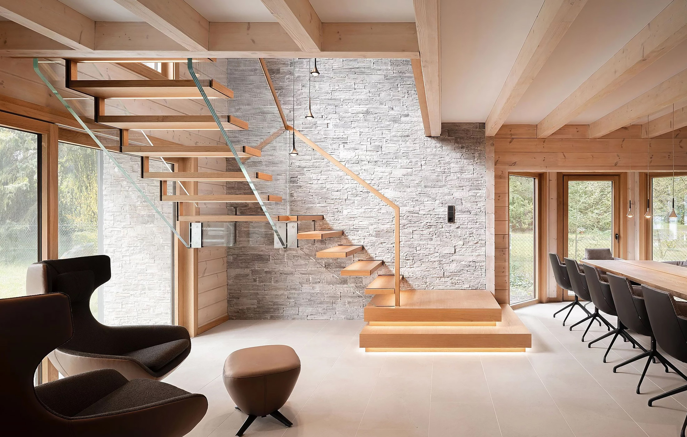 Уникальный натуральный материал, экологически чистый, тёплый и приятный на ощупь, в том числе для хождения по лестнице босиком.