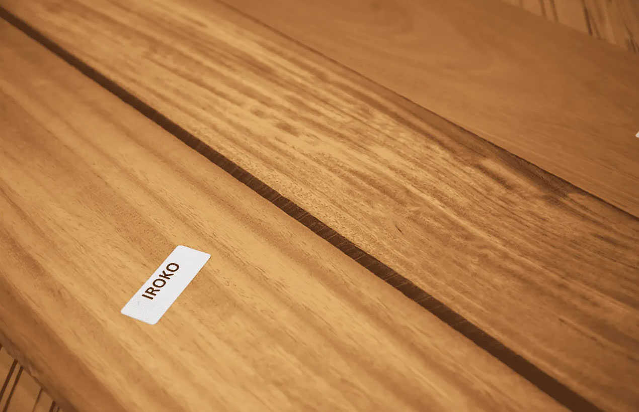 Поверхность древесины ироко умеренно глянцевая, волокна переплетены (свилеваты). Устойчива к изменениям влажности и температуры, что она идеально подходит для наружного использования, строений во влажной среде, недалеко от водоемов. это в основном жирное дерево, способное противостоять влаге и контакту с водой, атмосферными агентами (включая соль).