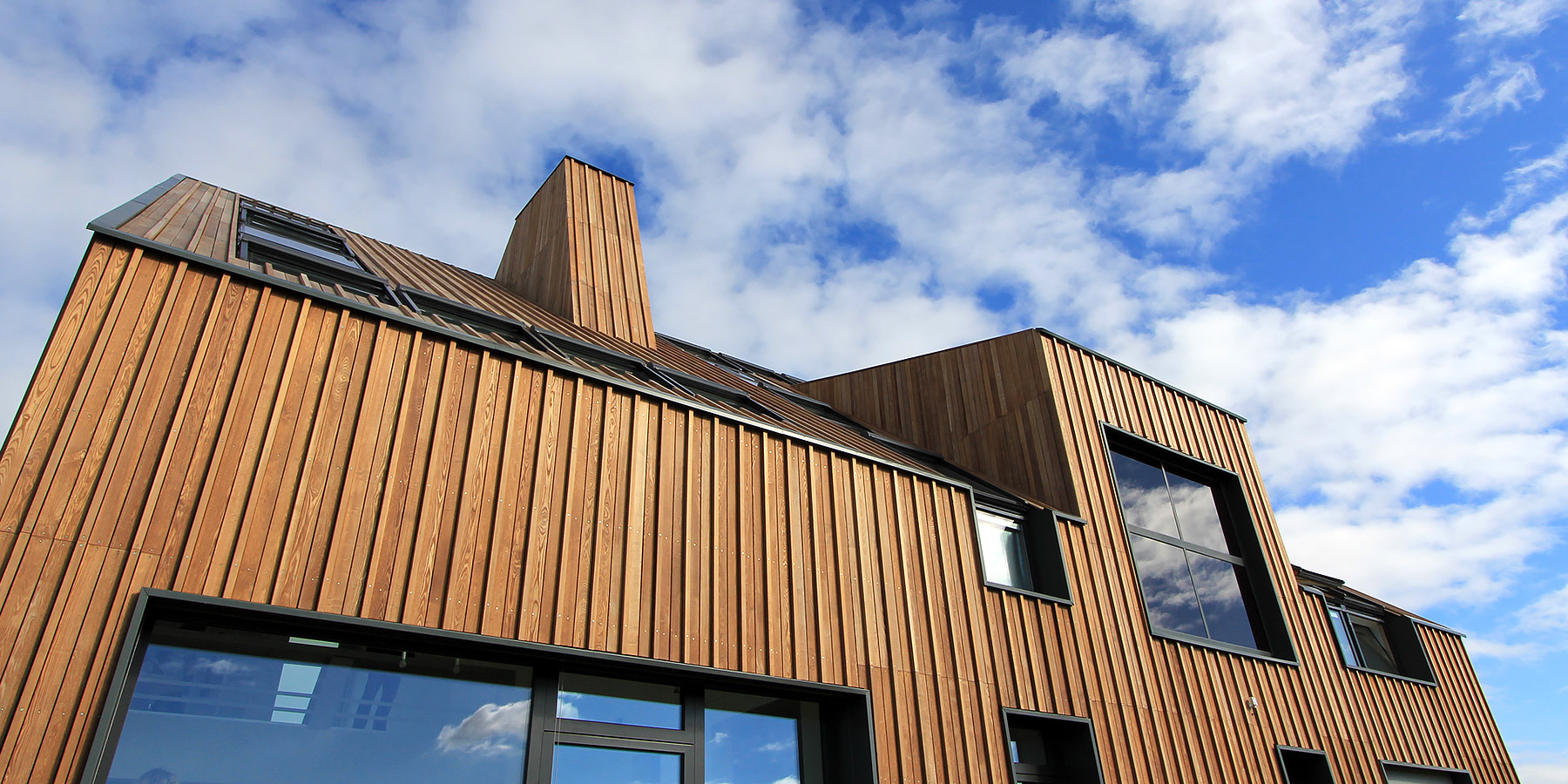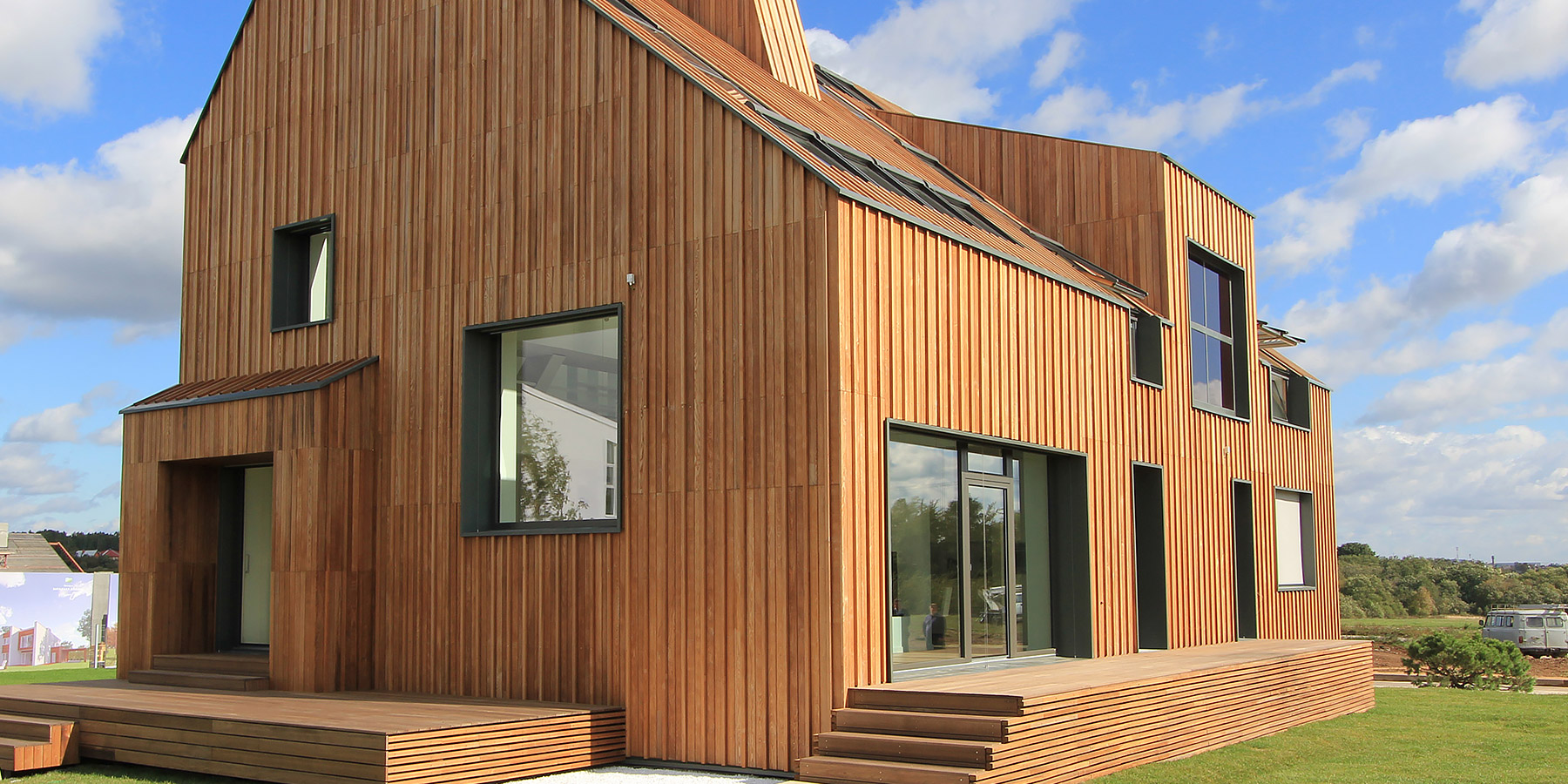 - Термообработанная древесина ясеня на кровле фасадах и террасах;
