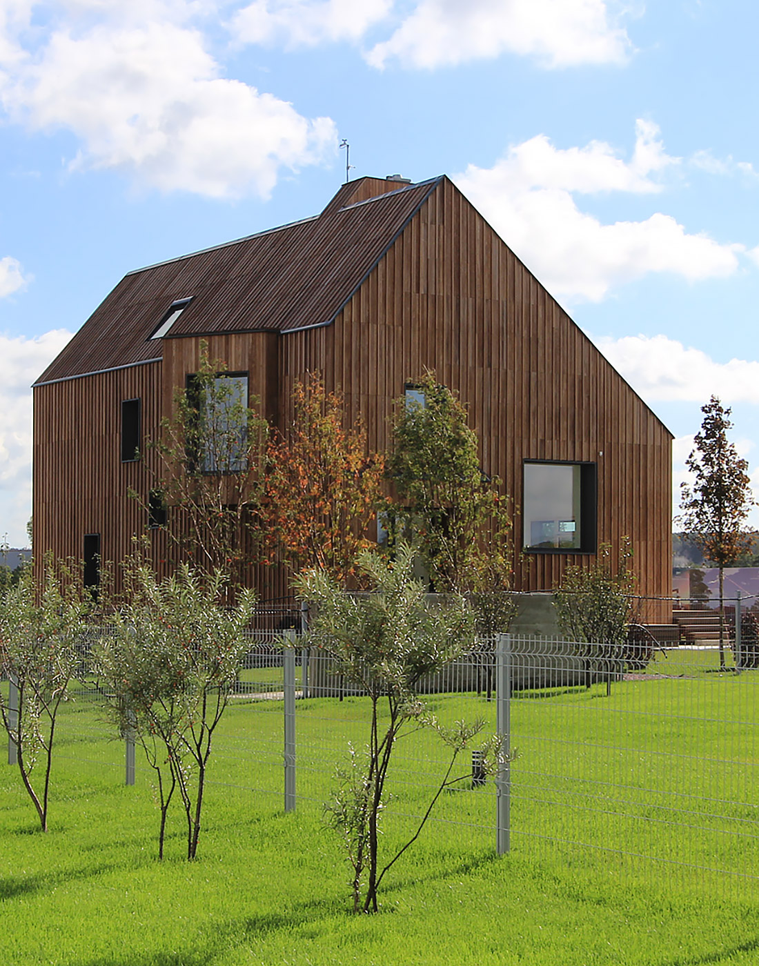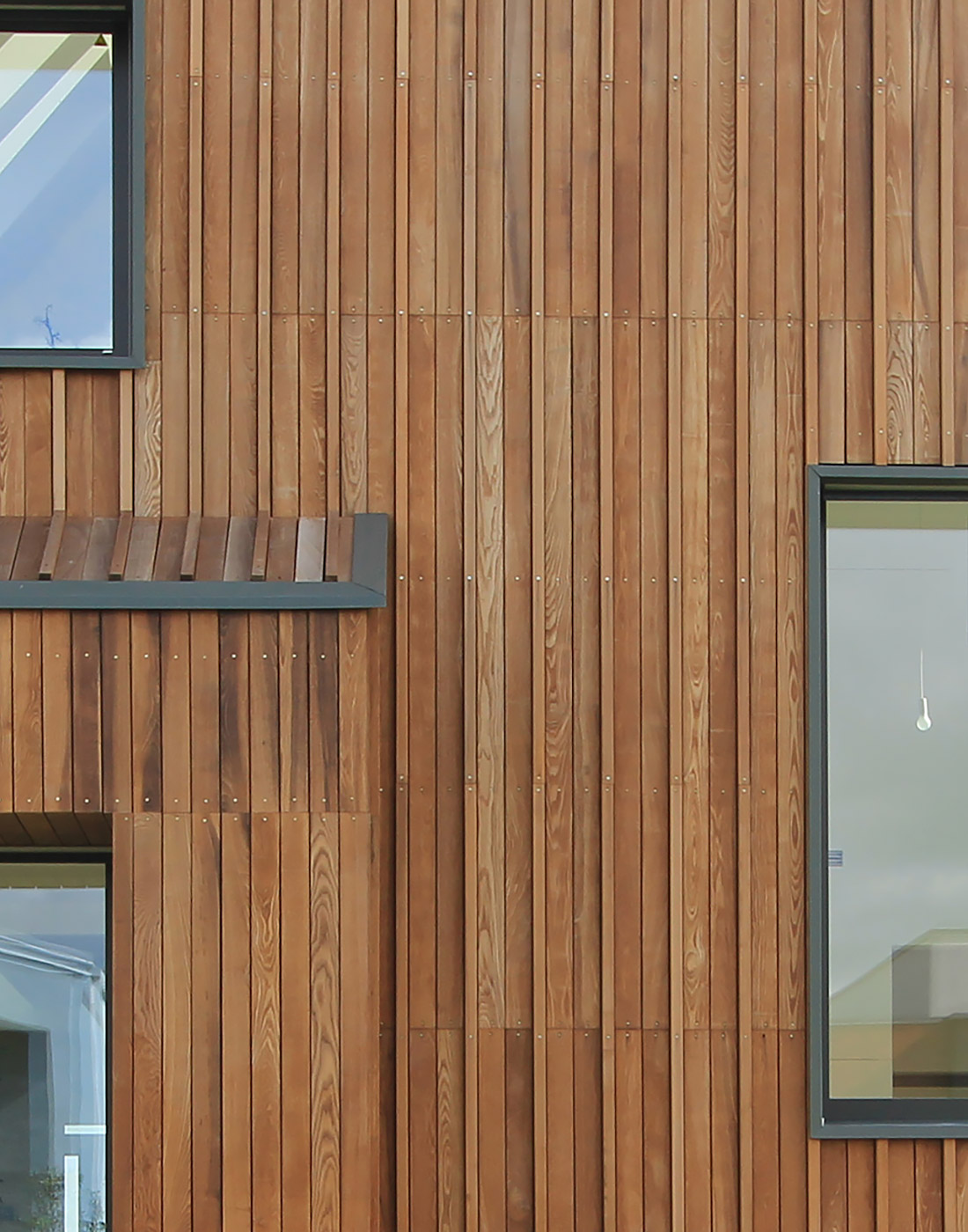 - Термообработанная древесина ясеня на кровле фасадах и террасах;