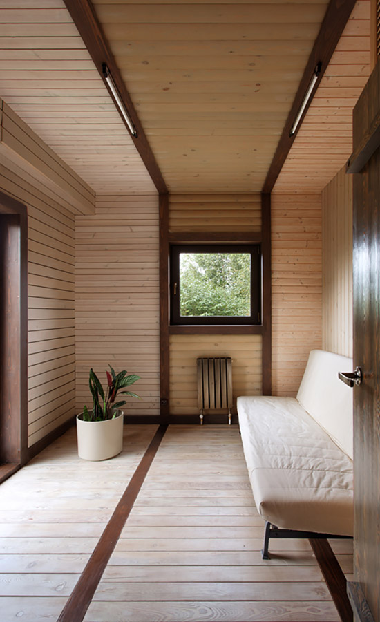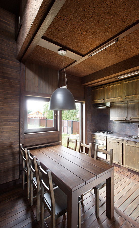 Wood Patchwork House — это деревянный трёхэтажный особняк, расположенный на берегу Волги. В этом проекте архитектор изящно и остроумно обыграл национальную традицию строить и латать дачные домики из подручных материалов. Лёгкий каркасный объём облицован решетчатыми деревянными панелями («лоскутами»), которые при ближайшем рассмотрении оказываются собранными из черенков от лопат, бруса и реек. Эти панели-ставни создают запоминающийся облик дома, одновременно защищая его от посторонних взглядов и пропуская дневной свет внутрь. Вся мебель была спроектирована Петром Костеловым, которому удалось достичь гармонии между экстерьером и интерьером.