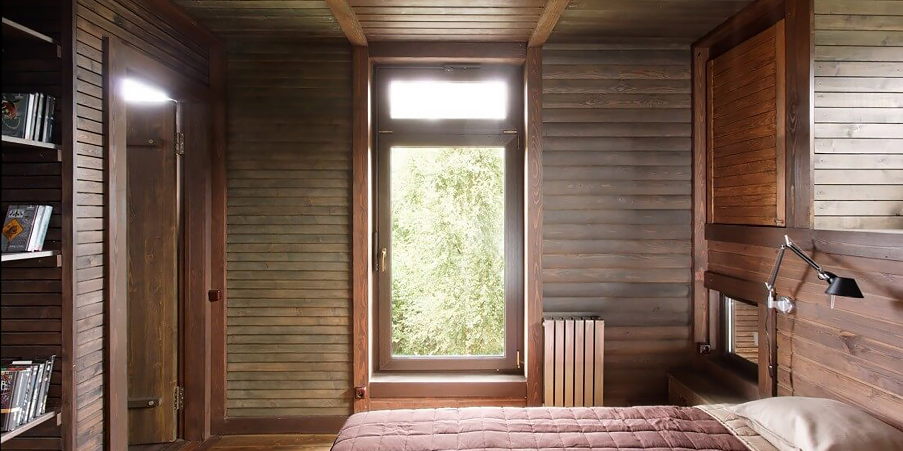 - Части отделки окрашены в различные оттенки коричневого и закреплены под разными углами, что создает эффект различного отражения солнечного света;
