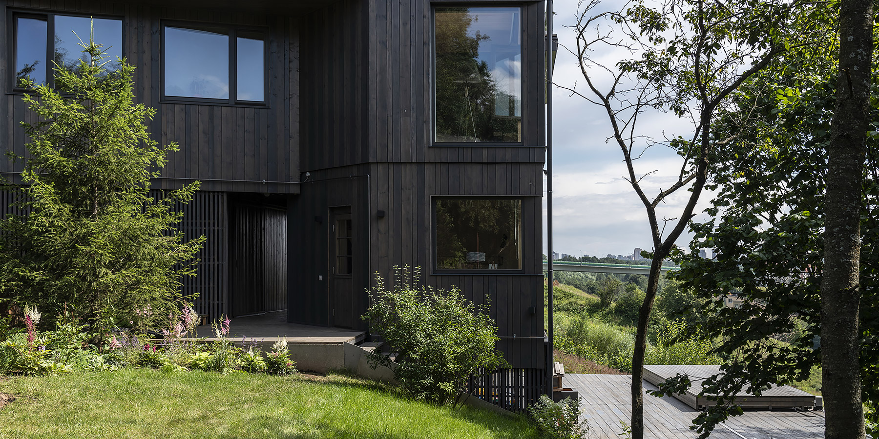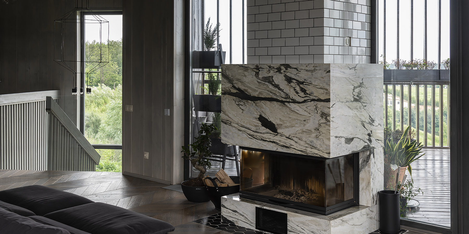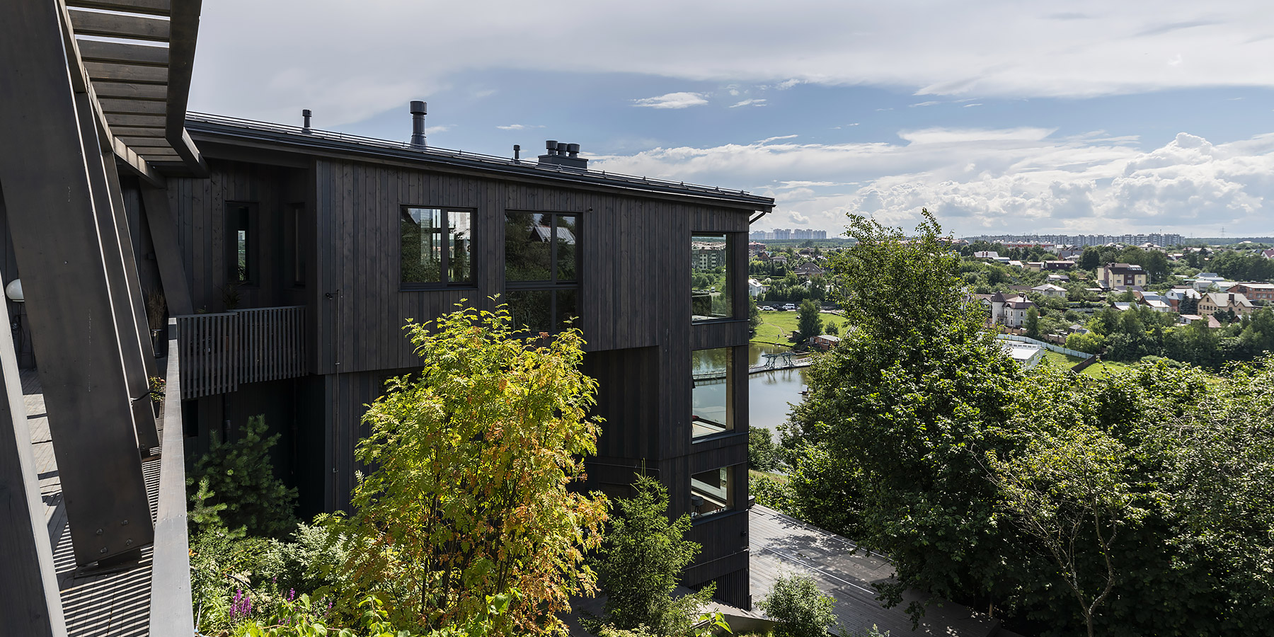 Загородный дом в Ромашково — пример того, как вид на природу может стать определяющим фактором для возведения здания, несмотря на кажущуюся невозможность.