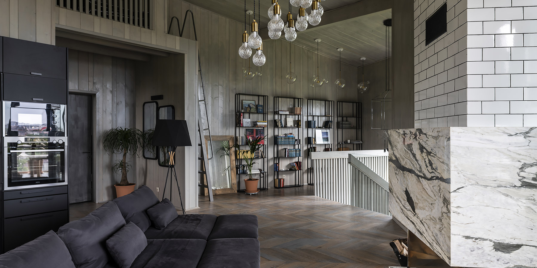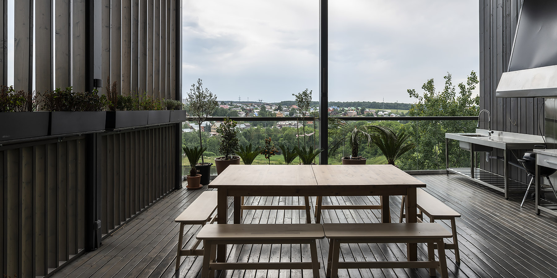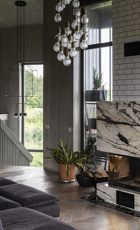 Загородный дом в Ромашково — пример того, как вид на природу может стать определяющим фактором для возведения здания, несмотря на кажущуюся невозможность.