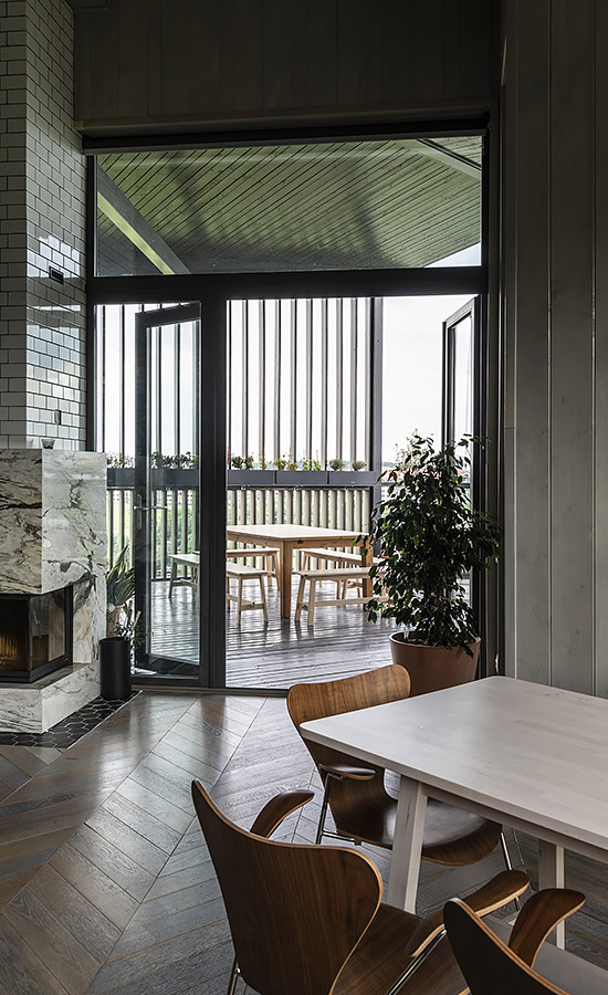 Расположенная на вершине холма, вилла представляет собой смелый эксперимент в области современной архитектуры. Единственный путь к дому — мост над обрывом, необходимый для доступа к дому. Изначально к участку не было дороги, а теперь мост подчеркивает изолированность и уникальность здания. Панорамное остекление позволяет полностью погрузиться в окружающий ландшафт — открывается вид на озеро с высоты, а слаломная гора, расположенная неподалеку, становится частью живописной композиции.