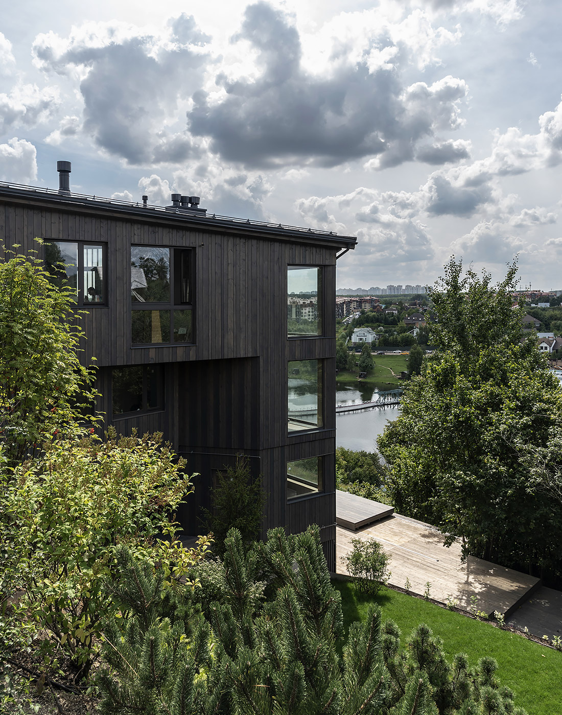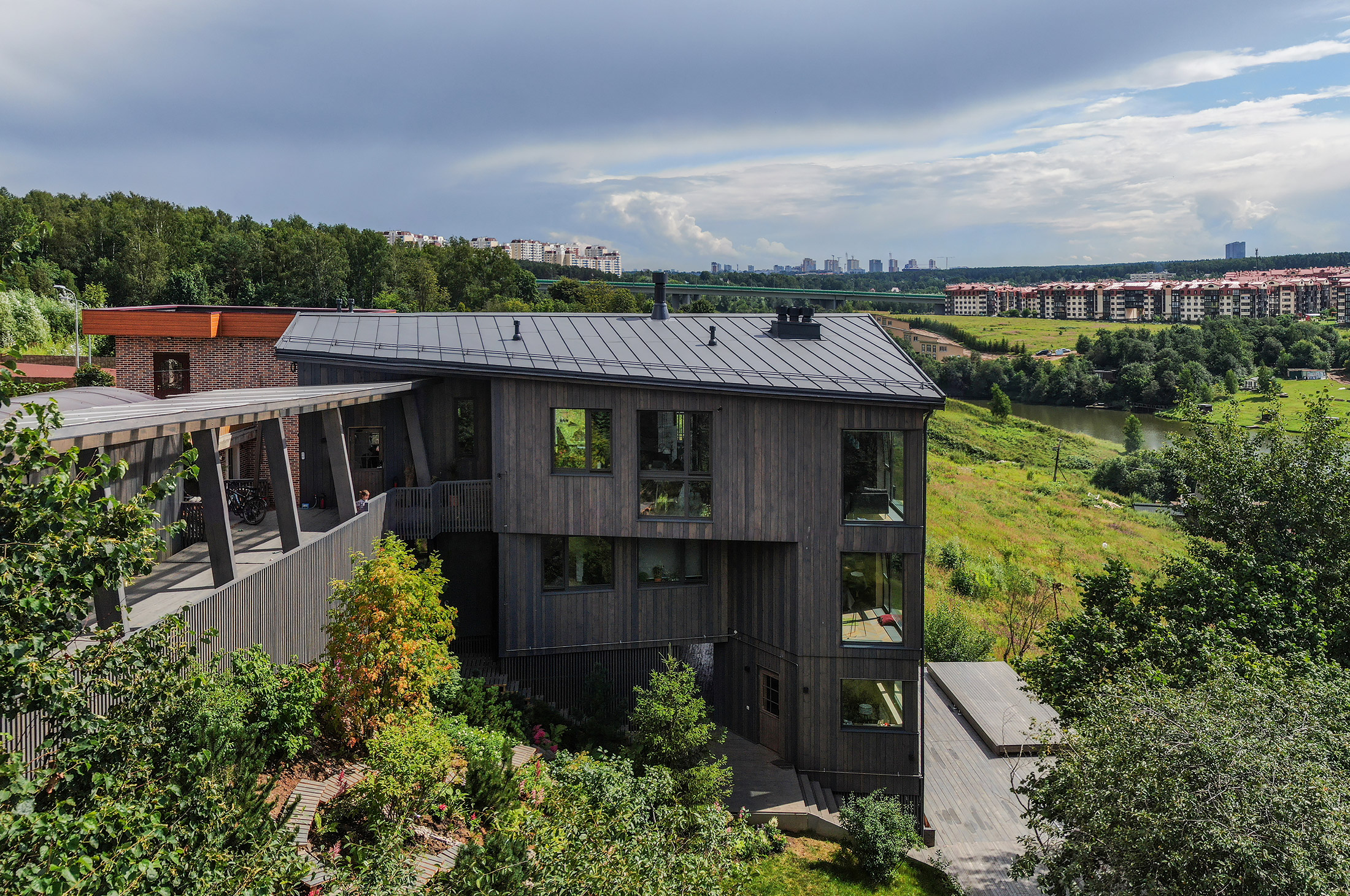 Загородный дом в Ромашково — пример того, как вид на природу может стать определяющим фактором для возведения здания, несмотря на кажущуюся невозможность.
